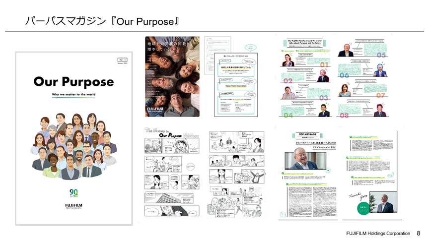 本セッションでは、統合思考経営にとって『理念やパーパス浸透』がなぜ重要なのか、浸透がうまくいかない企業の落とし穴、さらに“実装装置としての統合報告書”の可能性について掘り下げたいと思います。まずは、富士フイルムさんのパーパスについて、ご紹介いただければと思いますが。