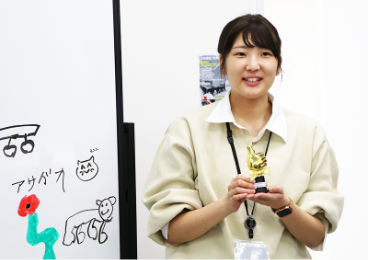 子供たちの投票により、『最も業務の説明が 分かりやすかった』と高い評価を得た社員に、トロフィーを贈呈しました。