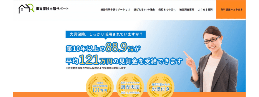 火災保険申請代行!サポート業者おすすめ比較ランキング|選び方とメリット・デメリットを完全網羅! 2024 11/26 保険 2024年8月1日2024年11月26日 この記事は、株式会社ウィルズによって、コンテンツ制作ポリシーに基づいて公開されています。また当記事には、広告収入が発生する部分が含まれています。 Tweet Pocket 読者 もしもの時に備えて少しでも多くの保険金が欲しい 読者 火災保険の申請をしたいけれど、手続きが面倒 といった悩みを抱える人は多いでしょう。 そんな思いを解消する手段の一つに、火災保険申請代行サポートがあります。 火災保険申請代行サポートとは、火災保険の申請において個人では難しい部分を専門家がサポートしてくれるサービスです。 今回はそんな火災保険申請代行サポートおすすめ業者やメリットデメリットまで徹底解説します。 火災保険申請代行 おすすめをまとめると 火災保険申請代行サポートを利用すれば申請にかかる面倒な手間が省ける 火災保険申請代行サポートを利用すれば専門知識を持っていなくても多くの保険金が受け取れる可能性がある 火災保険申請代行サポート会社を選ぶ時は「信頼できる業者か」「完全成果報酬型か」「弁護士によるリーガルチェックを受けているか」「手数料が安いか」を選ぶと失敗するリスクを軽減できる まれに悪徳業者もいるため注意が必要 当記事の監修者 ファイナンシャルプランナー 飯田道子さん 銀行勤務の後、FPとして独立。日本FP協会CFP資格を取得。CFP資格を取得して20年を超えて日本FP協会から表彰を受ける。現在はファイナンシャル・プランナーとしてライフプランニングや家計診断を通して老後資金の対策、節約術などの提案、海外暮らしなどの分野のアドバイスを行っている。 飯田道子さんの公式サイトはこちら こちら記事もおすすめ 【最新】プロが選ぶ生命保険ランキングトップ10!選び方や生命保険の種類もわかりやすく解説 目次火災保険申請代行サポートとは 火災保険の申請は通常契約者本人でないと申請ができません。 そのため、契約者でない人が火災保険の申請をすることは契約違反となります。 しかし、火災保険申請代行サポート代行業者を利用することは契約違反になりません。 火災保険の申請は専門知識が必要になる場面も多く、個人で申請しても事故原因などを正しく伝えられないことで、もしもの時に大きな減額や保険金が下りなくなる可能性があります。 火災保険申請代行サポート業者は作業を代行して簡単に火災保険の申請ができるようにサポートしてくれる業者です。 おすすめの火災保険申請代行サポート8選 ここからは、おすすめの火災保険申請代行サポート業者を紹介します。 おすすめの火災保険申請代行サポート業者 ミエルモ シラベル 損害保険申請サポート お家なおーる 保険請求の窓口 スマイルホームズ 火災保険申請事務局 お家の診察窓口 ミエルモ 出典:ミエルモ ミエルモは「火災保険申請サポート会社口コミ人気」「火災保険申請サポート会社認定率満足度」「火災保険申請サポート会社認定額満足度」の3部門でNo.1を獲得しているサポート会社です。 年間5,000件以上の調査実績があり、初期費用無料の完全成功報酬のため利用しやすい点が魅力です。 また、分業制によるスピード対応と高い認定率・給付金額を実現している点が特徴で、面倒な作業はほぼ丸投げして依頼できます。 ミエルモでは下記のような取り組みを行い、豊富な知識と経験を持ったスタッフが申請をサポートします。 社内研修に合格したスタッフのみ調査実施 理屈を構築した資料作成 原則ドローンでの調査を禁止 被害の発見や原因の特定など、個人では難しい部分は完全に丸投げでき、調査開始から最短2週間ほどで指定の口座に保険金が振り込まれます。 手数料 30~35% 対応エリア 全国(沖縄・離島、一部地域を除く) 実績 5,000件以上 保険金の使い道 自由 平均受給額 100万円 公式サイト 詳細はこちらから シラベル 出典:シラベル シラベルは実績件数4,000件以上、築10年以上の給付率90%以上の実績を持つ火災保険申請代行サポート会社です。 完全成功報酬型だからリスク0で依頼できます。 また、シラベルなら給付金の使い道が自由な点も嬉しいポイントです。 ホームページではこれまでの実績例を給付金や築年数、種別、保険内容などで比較することもでき、もしもの時のイメージがしやすいです。 また、調査した後にキャンセルした場合でもキャンセル料はかからないため、一度調査依頼をしてみることもおすすめします。 手数料 30% 対応エリア 東京、神奈川、千葉、埼玉、群馬、栃木、茨城 実績 4,000件以上 保険金の使い道 自由 平均受給額 記載なし 公式サイト 詳細はこちらから 損害保険申請サポート 出典:損害保険申請サポート 損害保険申請サポートは実績14,200件以上、築10年以上の建物背筋122万円の受給額実績を持つサポート会社です。 完全成果報酬型で調査、申請サポート費用の見舞金は40%で被害箇所がな
